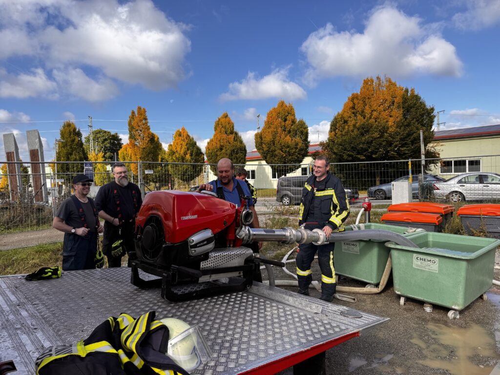 Unsere Maschinisten trafen sich am Samstag, den 11. Oktober zur alljährlichen Maschinisten-Abschlussübung. Vorbereitet wurden dafür einige anspruchsvolle Übungsstationen mit verschiedenen Aufgabenstellungen auf dem Gelände des künftigen Mindelheimer Bauhofs.