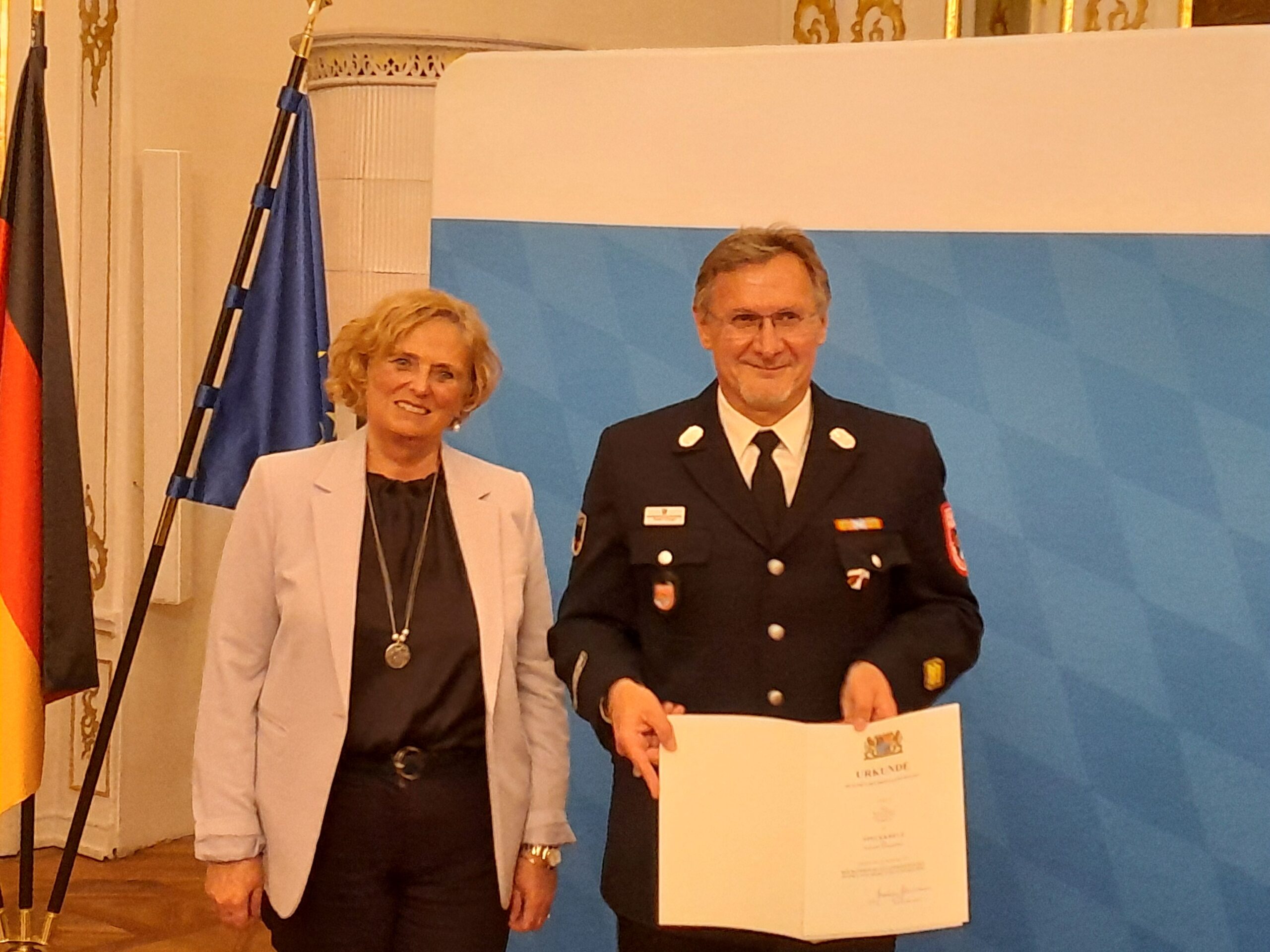 Unser Kommandant Robert Draeger wurde mit der höchsten Auszeichnung für Einsatzkräfte bayerischer Feuerwehren, dem Feuerwehrehrenzeichen als Steckkreuz, bedacht.